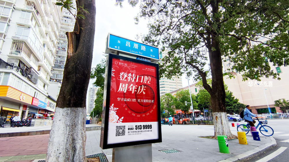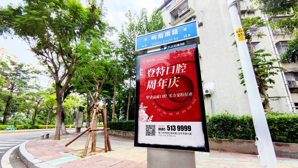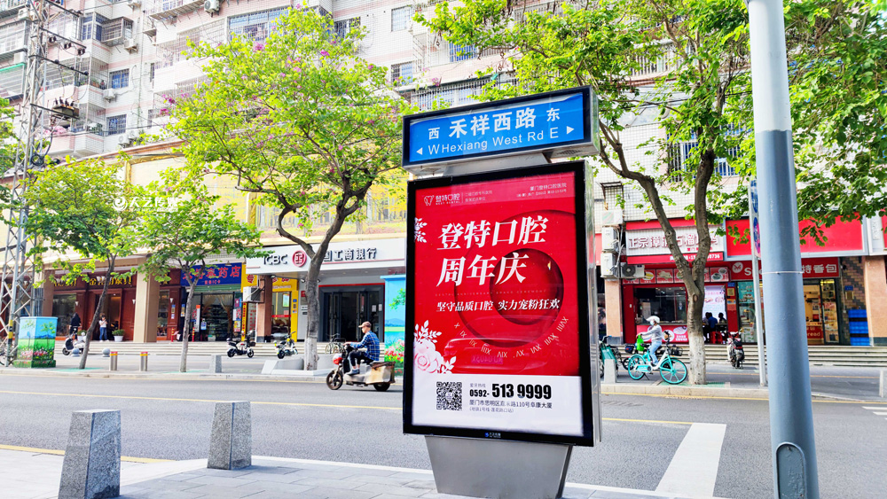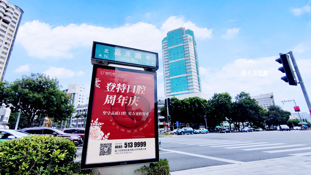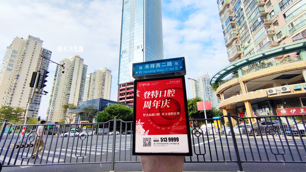 同時(shí),廈門登特口腔繼續(xù)與廈門天藝傳媒合作,投放鷺島全城超200座城市路名牌,覆蓋島內(nèi)各大交通主干道(如嘉禾路、禾祥西路、禾祥東路)、核心商圈、商務(wù)區(qū)寫字樓林立區(qū)、人流車流覆蓋密集區(qū)域。