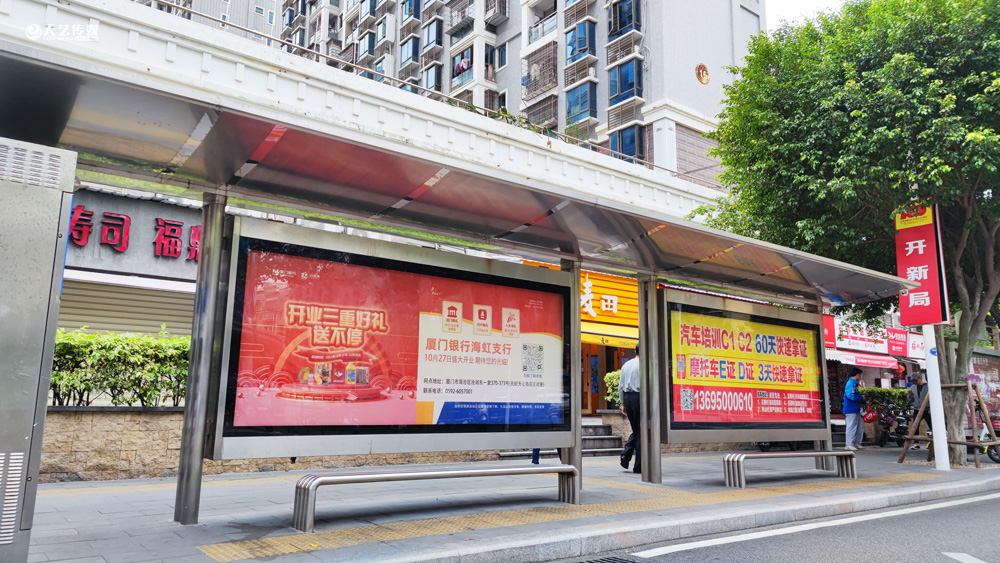 此次廈門銀行海虹支行選擇與天藝傳媒進(jìn)行戶外媒體投放的合作,投放海滄區(qū)(以海滄的生活區(qū)、海虹支行周邊區(qū)域?yàn)橹?的多個(gè)戶外廣告媒體,包括公交候車亭媒體、電梯框架廣告、社區(qū)公告欄媒體及社區(qū)出入口的道閘媒體等