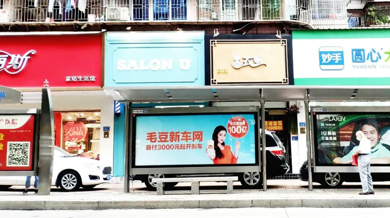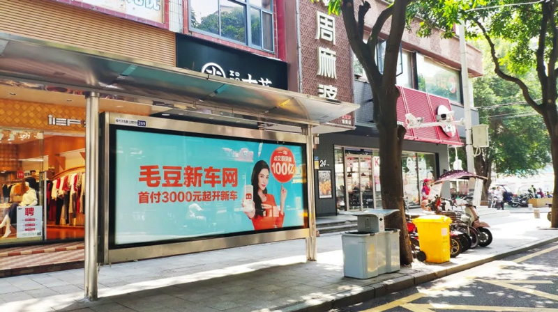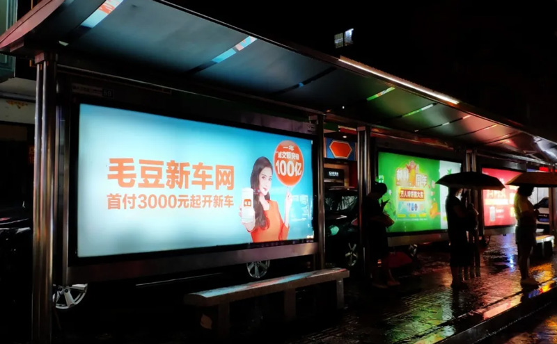 年輕一代有購(gòu)車需求的受眾們,每日都能在城市出行中必定要長(zhǎng)時(shí)間停靠的候車亭中,通過大面積的畫面刺激及重復(fù)接觸,將毛豆新車網(wǎng)品牌植入人心。