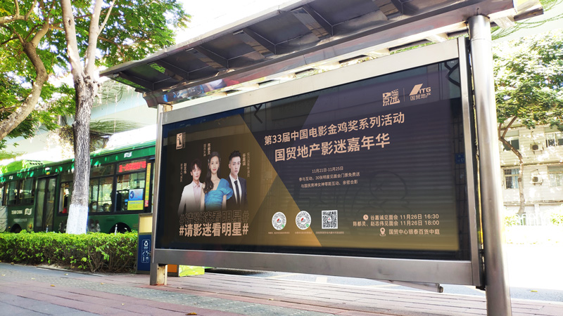 隨著本次金雞盛典系列活動的到來,廈門處處充滿了金雞電影盛會舉辦的氣氛。作為連接廈門各個主干道的公交網(wǎng)絡(luò),遍布城市大街小巷的公交候車亭媒體,以#影迷嘉年華#、#請影迷見明星#等為主背景畫面,全城展示。