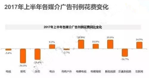 戶外媒體與“場景”和“場所”的連接成為決定其價值的重要因素。根據CTR媒介智訊《2017年上半年各媒介廣告刊例花費變化》顯示,影院視頻、電梯海報、電梯電視成為了三種增長最快的媒介形態(tài),而報紙、雜志和交通類視頻則是三種降幅最大的媒介形態(tài)。